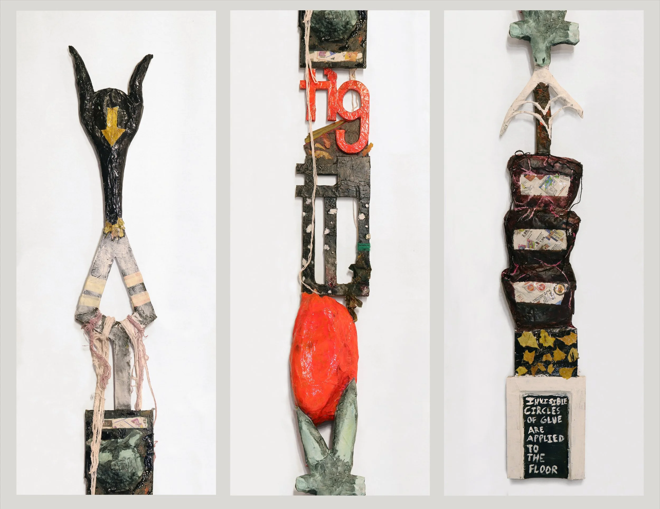 sample number 2127287, 2024, collaboration with Josie —-, wood, papier mache, wire, string, acrylic paint, charcoal, 8” x 120”